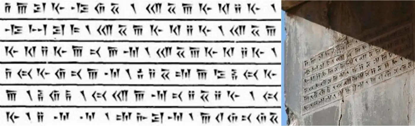 페르세폴리스에 있는 다리우스의 궁전 입구에 새겨진 설형문자는 다음과 같다.
