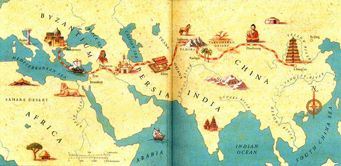 실크로드(6,500 km) : 페르시아의 위치와 광대한 땅의 풍요로움은 거의 700년(BC 54-AD 629년) 동안 지속된 모든 불필요한 로마-페르시아 전쟁의 많은 이유 중 하나였다.