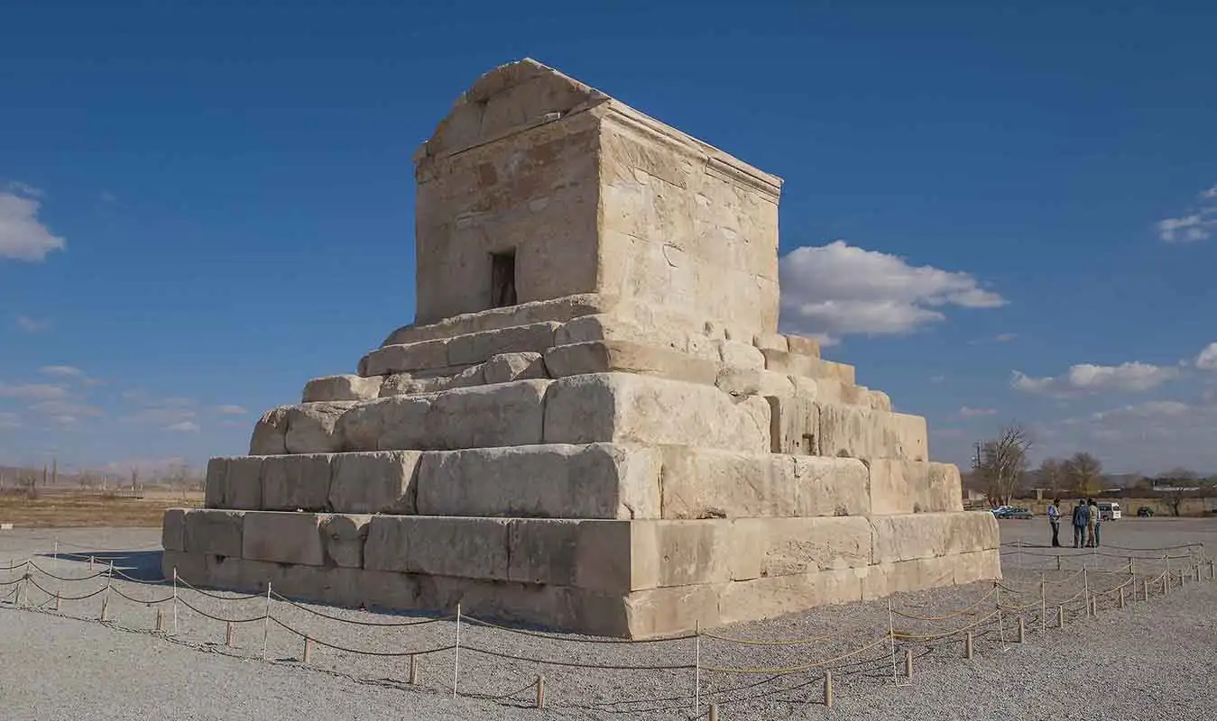 키루스 대왕이 죽은 후, BC 530-529년 사이에 그의 유해는 수도 파사르가다이에 묻혔다. 지금은 도시가 폐허가 되었지만, 그 무덤 자체는 남아있다. 석회암으로 만들어진 묘는 사각형의 밑부분과 더 작은 층의 연속된 피라미드형으로 구성되어 있다. 구조는 돌을 쌓은 피라미드형에, 측면에 작은 구멍 또는 창문이 있는 작은 아치형 지붕을 가진 건물로 이루어져 있다. 무덤 안에서 키루스 대왕은 황금 관에 묻혀 황금 받침이 있는 테이블 위에서 휴식을 취하고 있다. 사료에 따르면, 무덤은 기타 호화로운 물건으로 가득 차 있었고, 아름다운 정원으로 둘러싸여 있었다. 무덤 위에는 다음과 같은 글귀가 새겨져 있었다. "누구든지, 어디에서 오든지, 당신이 올 것을 알고 있다. 나는 페르시아 제국을 쟁취한 키루스다. 그러니 내 뼈를 덮고 있는 이 흙 덩어리를 못마땅해하지 말라."