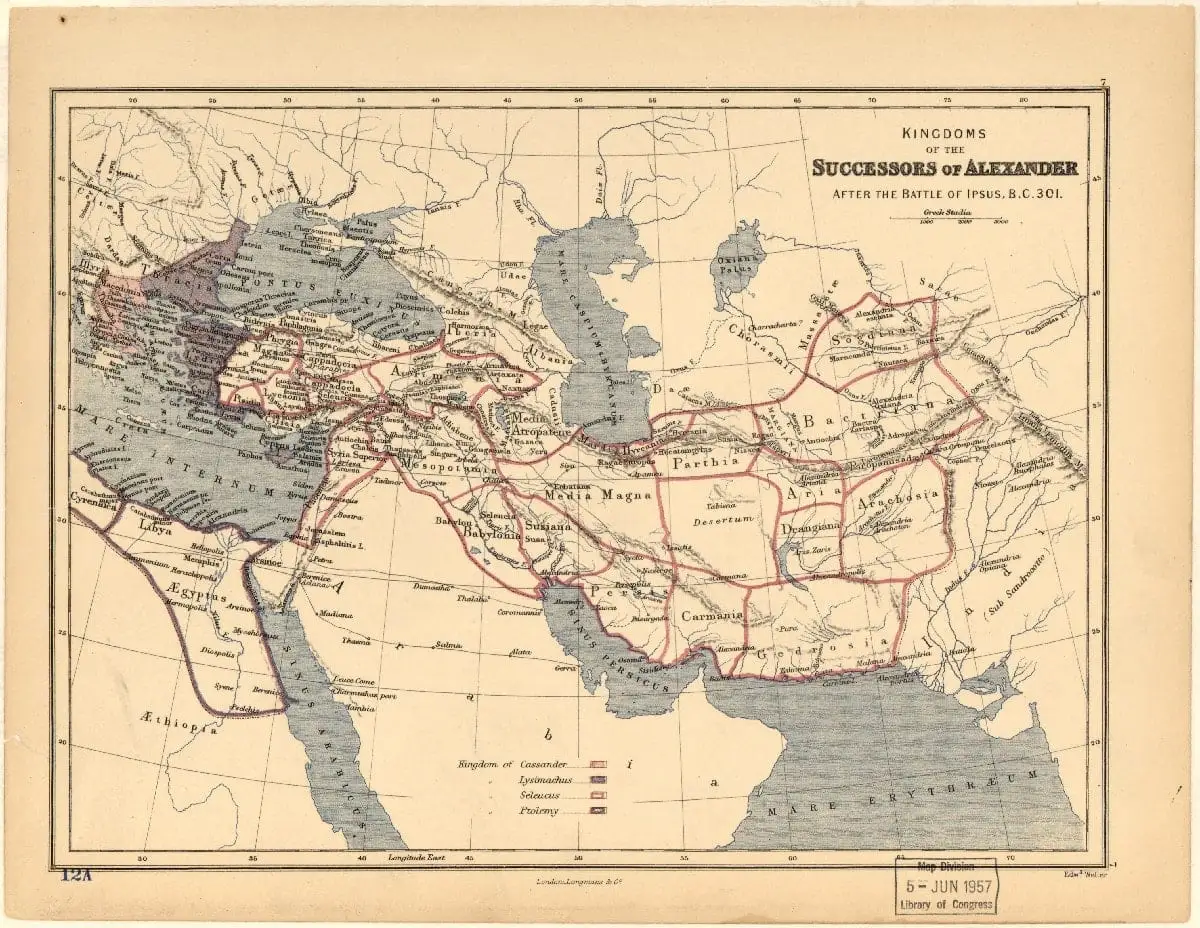 301년, 카산드로스, 리시마코스, 셀레우코스의 연합군은 프리기아의 이프소스에서 안티고노스와 그의 아들 데메트리오스 1세 고나타스에 맞서 싸웠다. 이 전투는 헬레니즘 세계의 미래를 결정했다. 안티고노스는 죽고 그의 아들 데메트리오스는 달아났다. 리시마코스는 영토를 소아시아로 확장했고 프톨레마이오스는 자신의 영토에 남부 시리아를 추가했다.