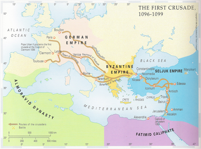 1095-1291년 10월 교황 우르바누스 2세가 이슬람 제국에 맞서 클레르몽 공의회에서 기독교 국가들의 성지를 탈환하기 위해 최초로 십자군을 소집하다
