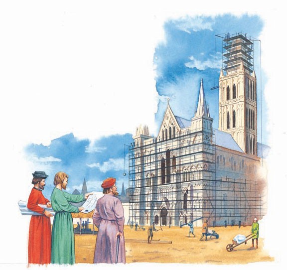 중세 시대에는 유럽 전역에 수천 개의 수도원, 대수도원, 교회 및 대성당이 건설되었다. 가장 큰 건축물은 완성하는 데 오랜 세월이 걸렸다. 프랑스의 클뤼니와 같은 일부 대수도원은 자체 성벽 안에 있는 작고 독립된 도시 같았다. 웅장한 대성당도 많이 지어졌다. 대성당"Cathedral"이라는 단어는 "의자"를 의미하는 라틴어 카테드라"Cathedra"에서 유래되었다. 대성당은 주교좌가 있는 건물이었다.