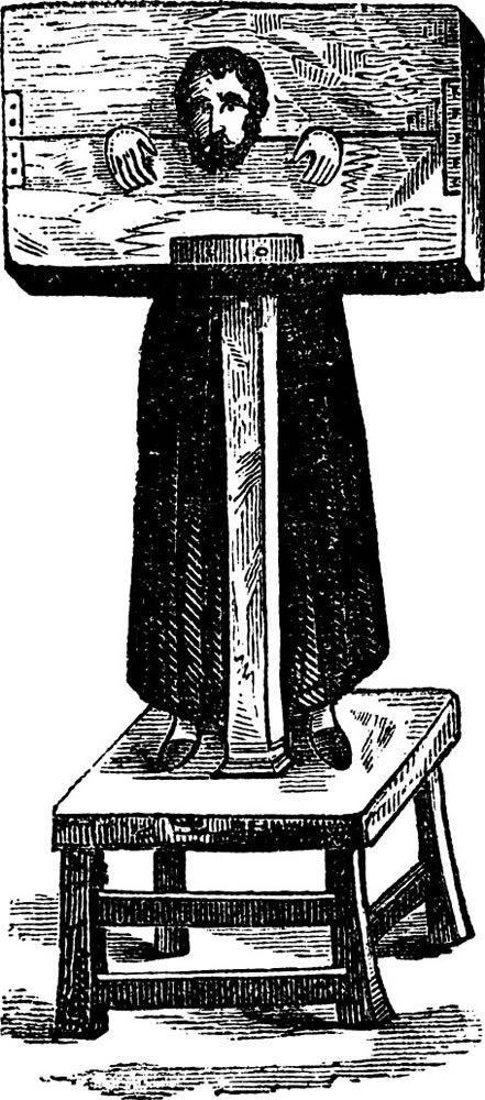 사소한 절도에 대한 처벌로 칼을 씌우거나 그루터기에 묶어 공개적인 수치심을 주었다. 범인은 나무 널빤지에 매여 학대를 당했다. 이들은 썩은 과일을 자주 맞았다. 그루터기에 매인 경우, 범죄자는 발이 묶인 채로 앉아 있었다. 칼을 씌운 경우, 목과 손목이 매인 채로 서 있었다.