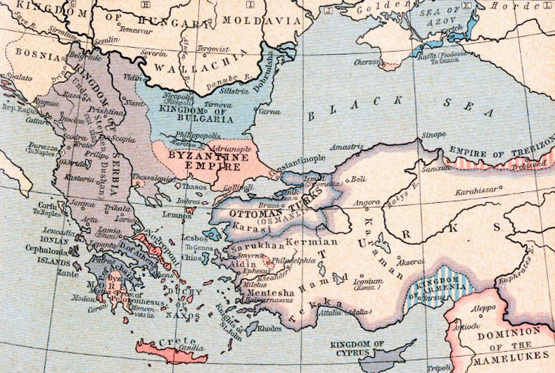 1261년, 비잔틴 제국은 십자군(1204년에 도시를 점령했던)으로부터 콘스탄티노폴리스를 탈환했다. 그러나 이전 제국의 영토 대부분은 여전히 적의 손에 남아있었다. 발칸반도(유럽 남동부)는 이 지역의 경쟁국들인 스테판 두샨(1331-55) 치하의 세르비아 제국, 불가리아 제국, 베네치아 공화국으로 나뉘어 있었다.