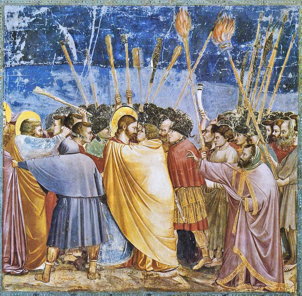 조토 디 본도네의 그리스도 체포(유다의 입맞춤)는 1304-1306년 이탈리아 파도바의 스크로베니 예배당 벽에 그려졌다.