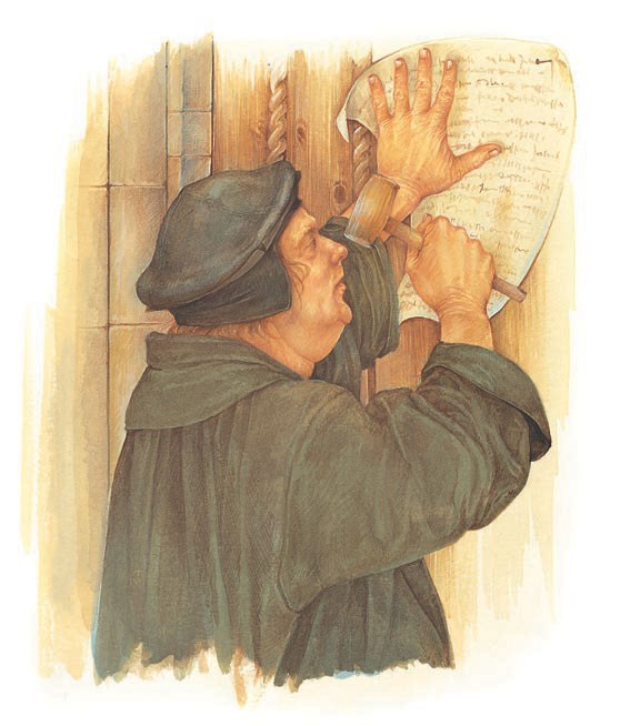 전승에 따르면 1517년 10월 31일 마르틴 루터(1483-1546)라는 독일 수도사가 독일 비텐베르크의 성 교회 문에 문서를 못으로 박았다. 95개조 반박문으로 알려진 이 문서에는 돈으로 죄를 사면해 주는 관행을 포함하여 로마 카톨릭 교회의 부패에 대한 일련의 공격이 담겨 있었다. 독실한 루터는 사람이 오직 믿음으로만 구원받는다고 믿었다. 루터의 항의 행위는 종교개혁이라고 불리게 된 종교 운동의 시작을 알렸다.