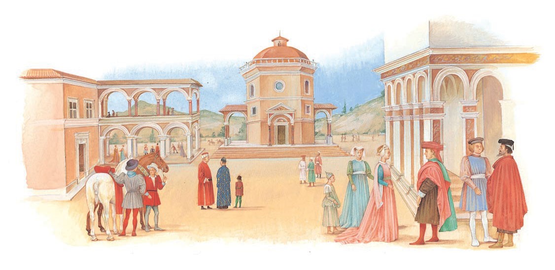 1300년대의 이탈리아는 오늘날과 같이 통일된 나라가 아니었다. 그곳은 만토바의 곤차가 가문과 같은 강력한 가문이 지배한 많은 도시 국가로 구성되어 있었다. 고대 그리스 로마의 고전적인 디자인을 반영하는 웅장한 건물들을 설계하기 위해 건축가들을 고용하고, 건축물을 장식하기 위해 예술가들을 고용한 부유한 가문들에 의해 르네상스가 촉발되었다. 그들은 또한 학자들이 고대 그리스 로마 작가들의 작품을 연구하도록 장려했다.