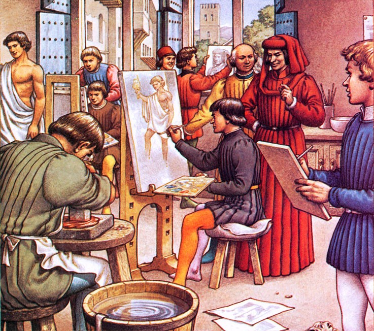 르네상스 후기에 산드로 보티첼리(1445-1510), 레오나르도 다 빈치(1452-1519), 미켈란젤로(1475-1564), 라파엘로(1483-1520), 티치아노(1488-1576)와 같은 예술가들이 피렌체, 로마, 베네치아 또는 다른 곳에서 부유한 후원자들을 위해 일했다.