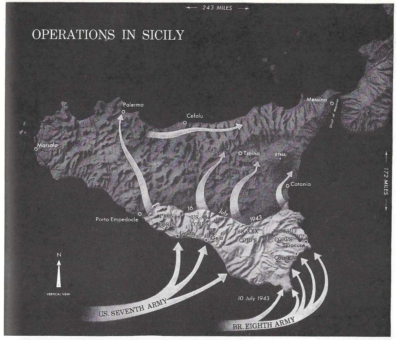 7월 10일 연합군이 허스키 작전으로 시칠리아를 침공했다. 6주간의 치열한 전투로 추축국(이탈리아와 독일) 군대가 섬에서 쫓겨나 지중해의 바닷길이 열렸다.