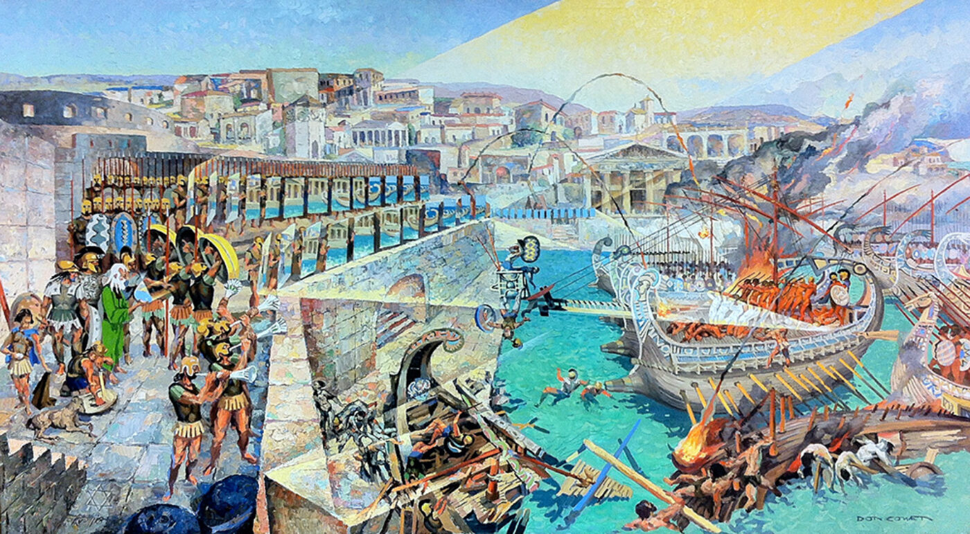 칸나에 전투의 로마 측 생존자들은 시킬리아로 보내졌고 적대 행위가 끝날 때까지 떠나는 것이 금지되었다. 히에로니무스의 진영 변경 결정으로 로마 군대는 시라쿠사로 파견되었다. 카르타고 또한 섬에 군대를 보냈고 섬을 장악하기 위해 로마인과 싸웠다. BC 212년 마르켈루스 군이 시라쿠사를 정복한 것은 전쟁의 결정적인 순간이었으며 이는 시라쿠사 귀족의 일원이나 카르타고 진영의 이베리아 용병이 도시를 배신한 결과였다. 시라쿠사 정복은 도시의 지형, 아르키메데스가 건설한 방어 기계, 특히 폭군 디오니시오스 1세(BC 404-367)에 의해 원래 건설된 광범위한 요새, 특히 Euryalus 요새로 인해 로마의 희생이 컸다. 도시는 약탈되었고 아르키메데스를 포함한 많은 주민들이 살해되었다.