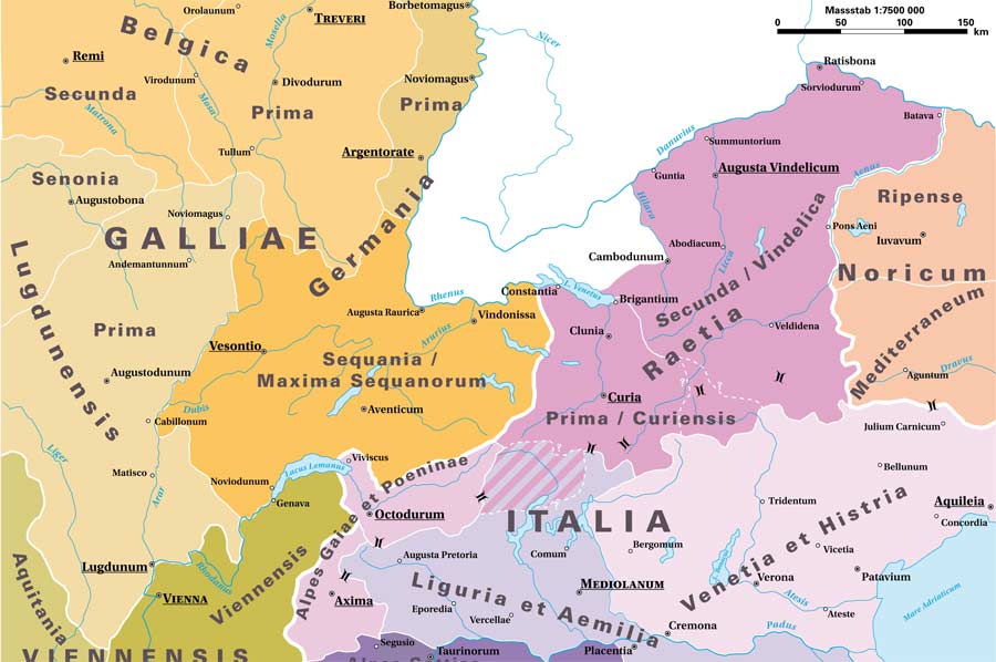 속주의 주도는 아우구스타 빈델리코룸(오늘날 독일 남부 아우크스부르크)이었다.