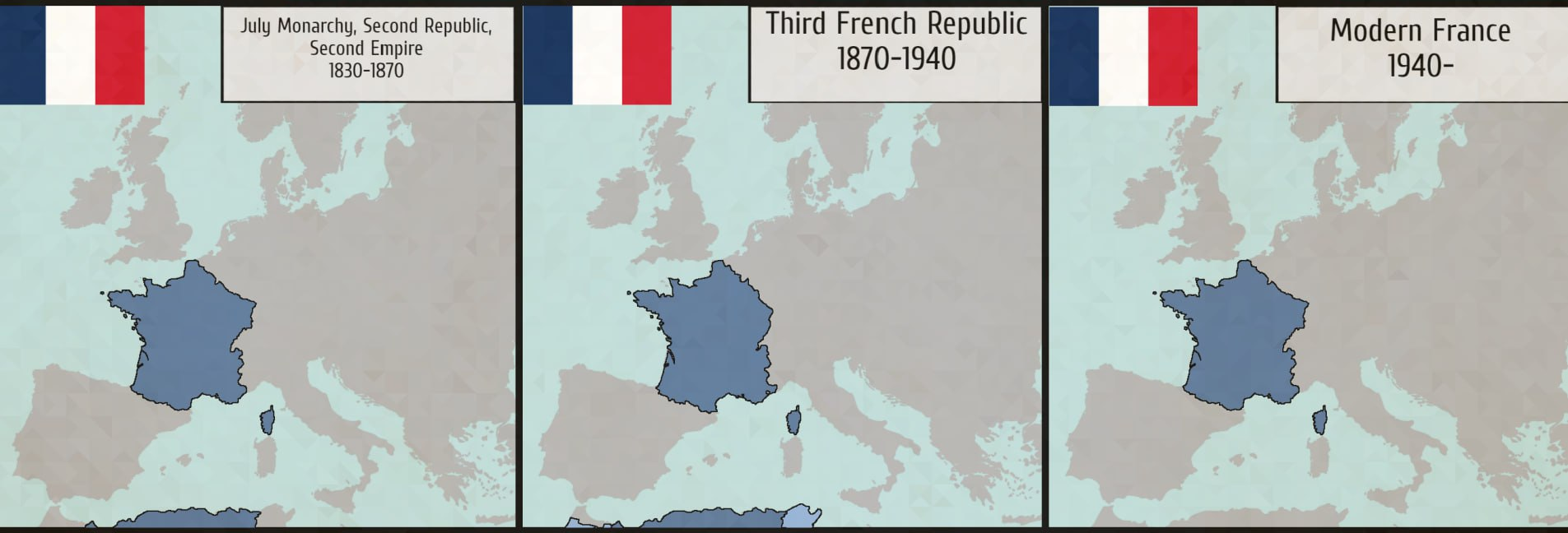 19세기와 20세기는 프랑스가 독일에 알자스로렌을 빼앗긴 보불 전쟁과 두 차례의 세계대전이 발발하여 프랑스가 점령과 영토 변화를 경험하는 주목할 만한 사건들이 일어나 프랑스 국경에 추가적인 변화가 있었다.
