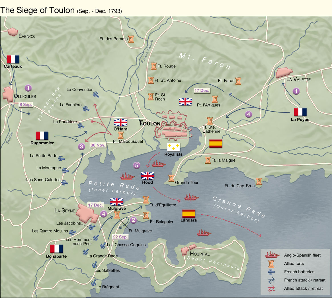 나폴레옹의 경력은 프랑스혁명전쟁 중 놀라운 성공을 거두면서 시작되어 권력을 장악할 수 있는 발판을 마련했다. 1793년 6,300명의 사상자를 낸 툴롱 포위전 이후 나폴레옹은 빠르게 강력한 지도자로 자리매김했다.