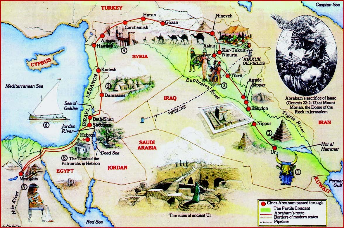 아브람(이름이 바뀌기 전)의 아비 데라는 가족을 이끌고 갈대아 우르를 떠나 가나안을 향해 가던 중 하란에서 타계했다. 아브람은 여호와 하나님의 명에 따라 지정한 땅으로 향했다.