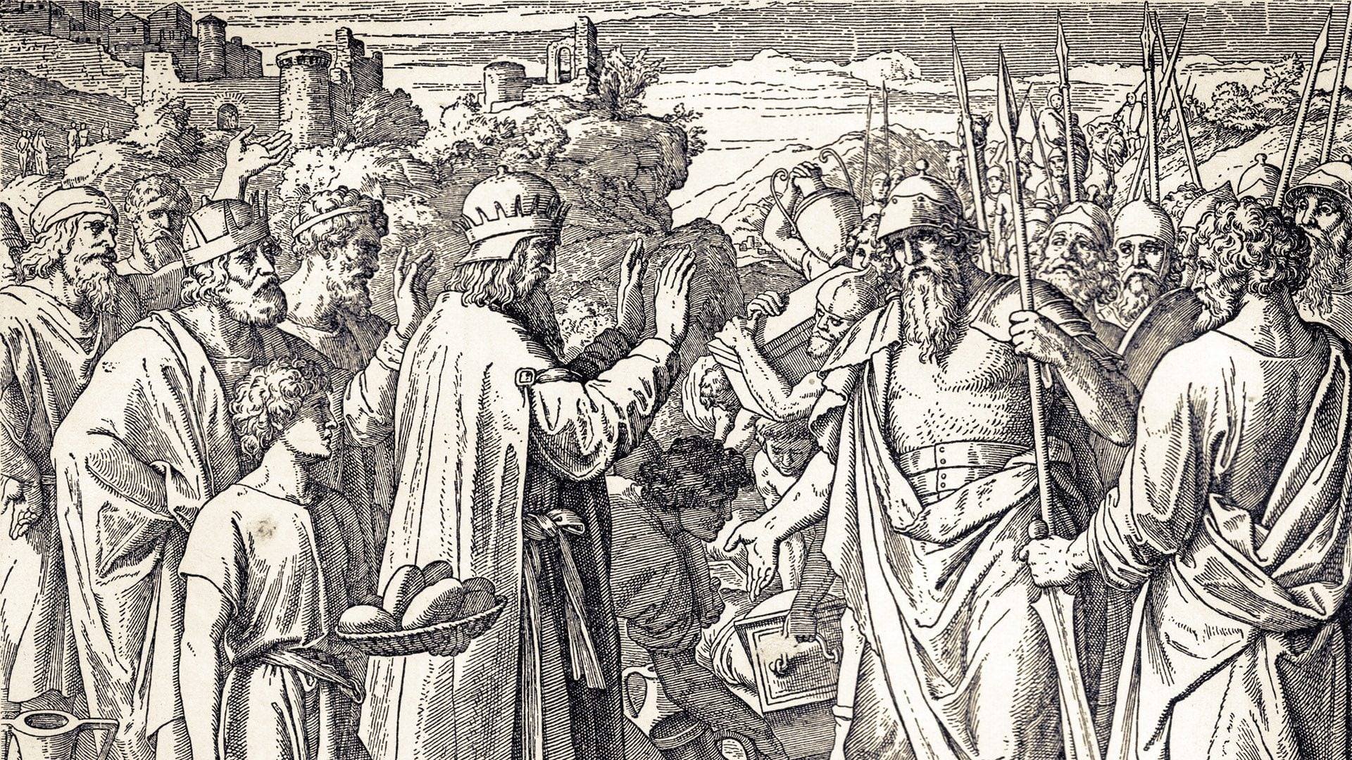 아브람이 네 왕을 파하고 돌아올 때 떡과 포도주를 가지고 온 하나님의 제사장인 살렘왕 멜기세덱을 만났다. 그가 아브람을 위해 하나님께 복을 빌자, 아브람은 멜기세덱에게 얻은 것의 십분 일을 주었다.