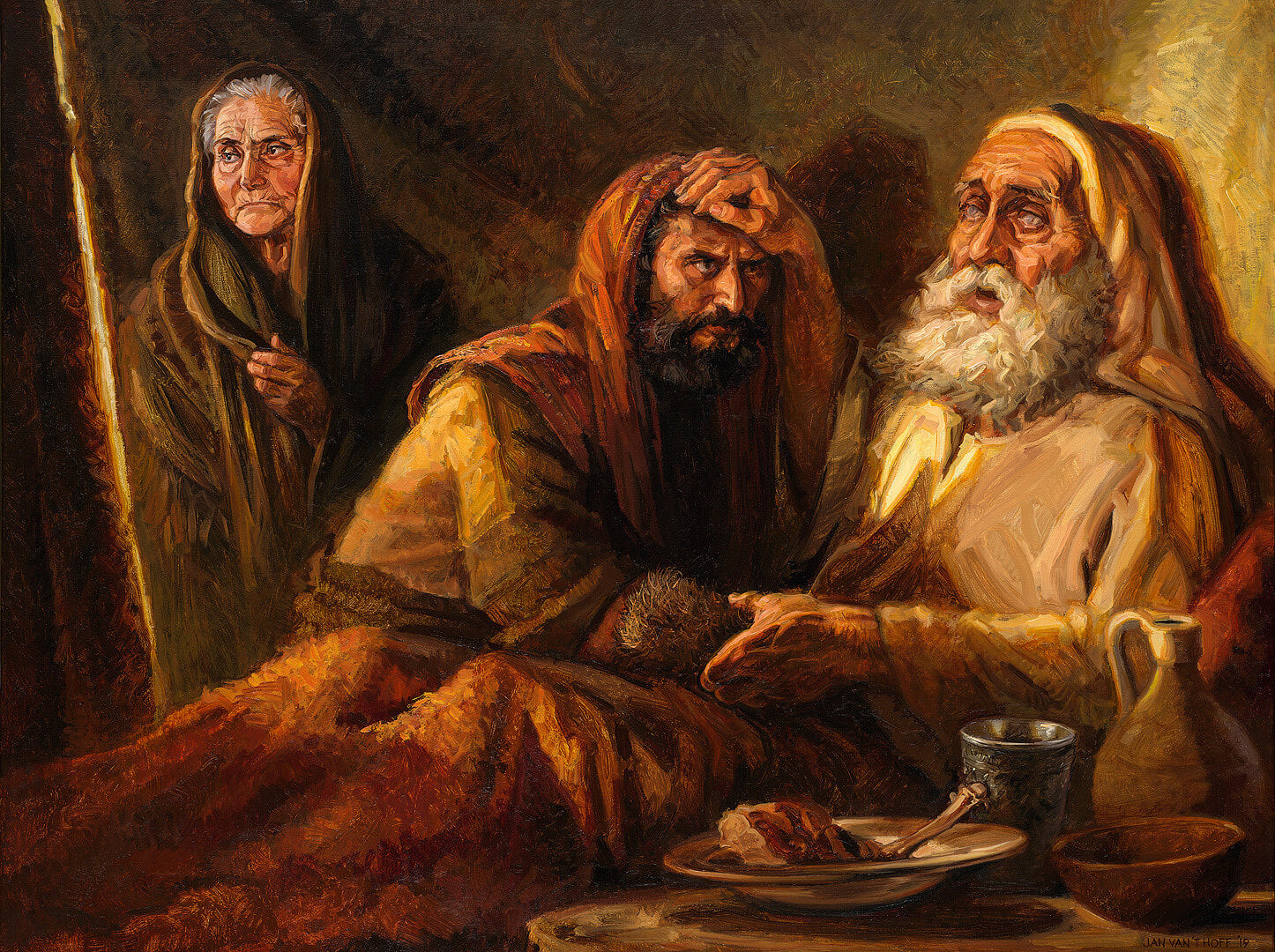 40세에 리브가와 혼인한 이삭은 아내가 잉태하지 못하자 여호와께 간구하여 리브가가 잉태하게 되었다. 아이들이 태속에서 서로 싸우자 그는 여호와께 여쭈었다.