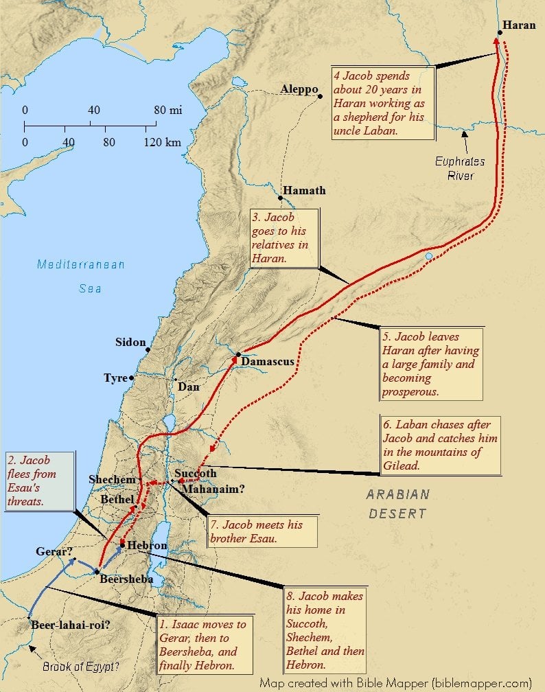 4. 야곱은 외삼촌 라반의 양치기로 하란에서 약 20년을 일했다.