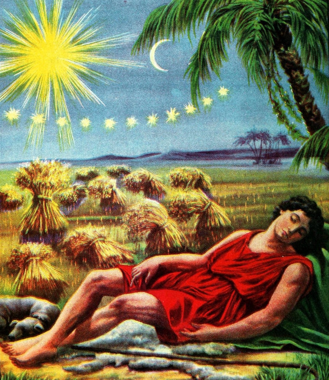 또 다른 꿈을 꾸고 요셉이 부친과 형들에게 “해와 달과 열 한 별이 내게 절하더이다”하니 야곱은 “나와 네 모와 네 형제들이 네게 절하겠느냐” 했다. 형들은 시기했지만 야곱은 이 말을 마음에 두었다.
