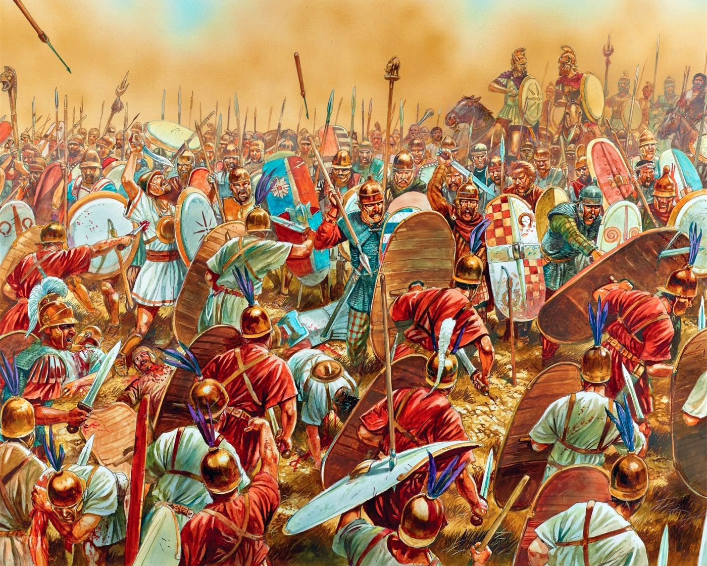 메사나에서 카르타고 군에 대한 로마의 공격은 1차 포에니 전쟁을 촉발했다. 한 세기 동안 로마와 카르타고 사이의 이 세 가지 주요 갈등이 서구 문명의 미래를 결정하게 되었다. 전쟁에는 한니발이 이끄는 극적인 카르타고 침공이 포함되어 로마를 거의 궁지로 몰아넣었다.