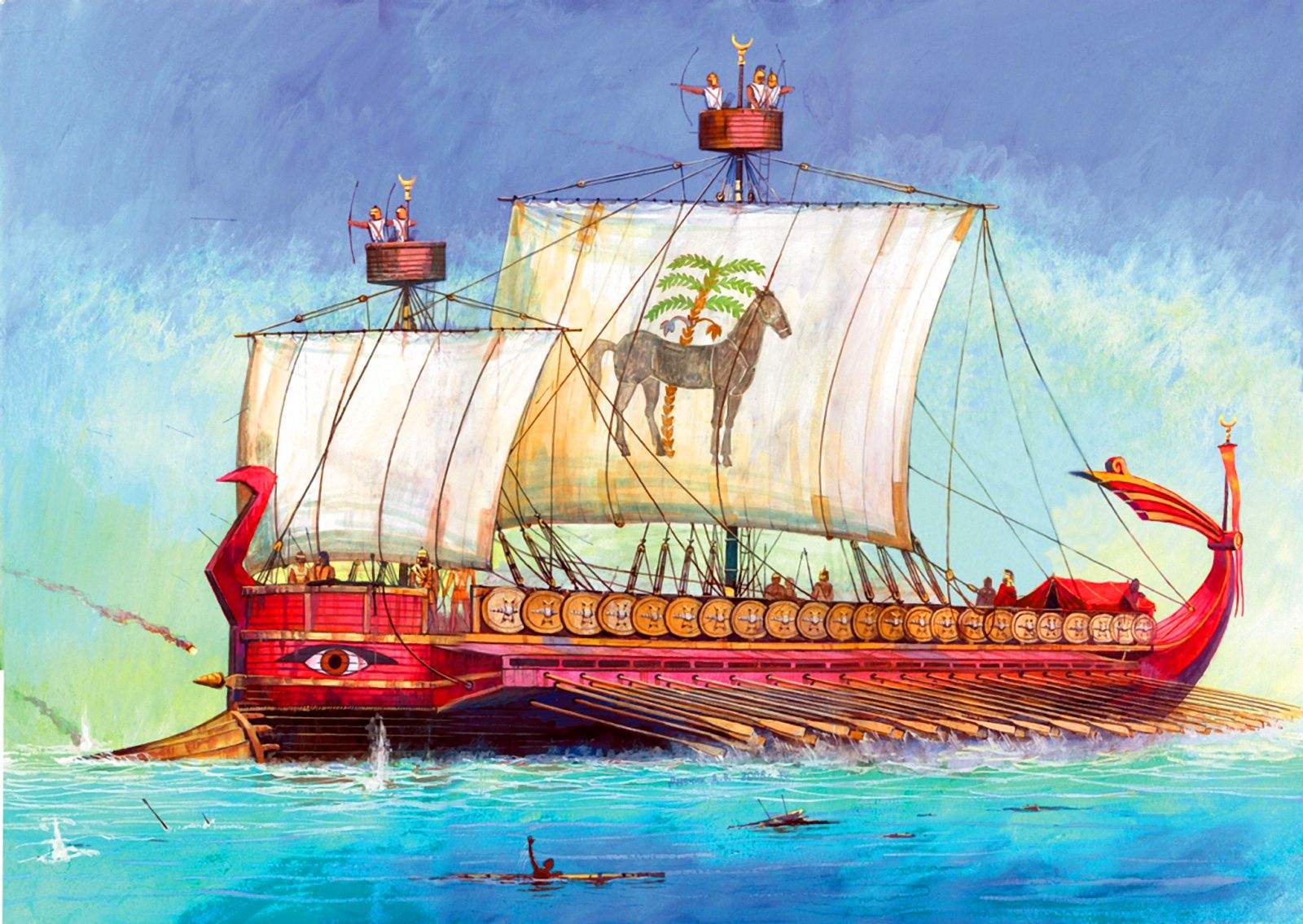 1차 포에니 전쟁 이전에 해전 경험이 거의 없었던 로마인은 정복된 도시에서 숙련된 그리스 선원 모집, 비 전통적인 까마귀 장치, 해병과 노 젓는 사람의 우월한 수의 도움을 받아 카르타고 함선을 포획한 리버스 엔지니어링으로 카르타고를 부분적으로 패배시켰다. 폴리비우스는 3차 포에니 전쟁 동안 카르타고인의 전술적 혁신에 대해 설명했다. 갈고리(노를 공격하기 위해)와 불(선체를 공격하기 위해)을 운반하는 작은 선박으로 그들의 몇 안 되는 삼단노선을 보강했다. 이 새로운 조합을 통해 그들은 수적으로 우월한 로마인들에 맞서 싸울 수 있었다. 로마인은 또한 도시 재건에 코톤을 활용하여 지역의 상업 및 전략적 개발을 지원했다.