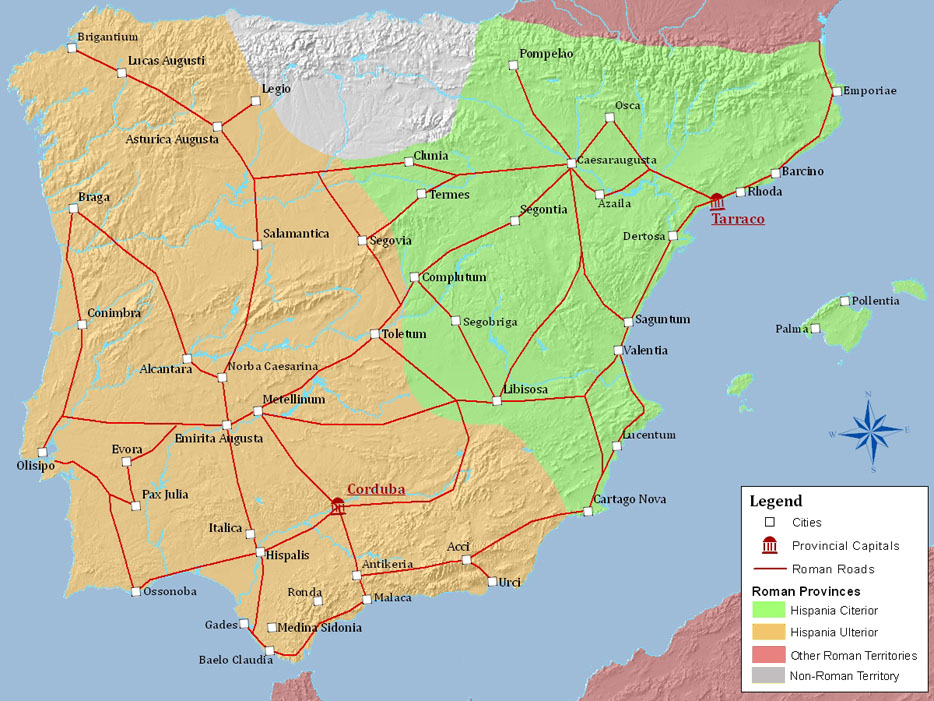 BC 50년 히스파니아의 로마 영역, 히스파니아 키테리오르 속주(밝은 녹색)