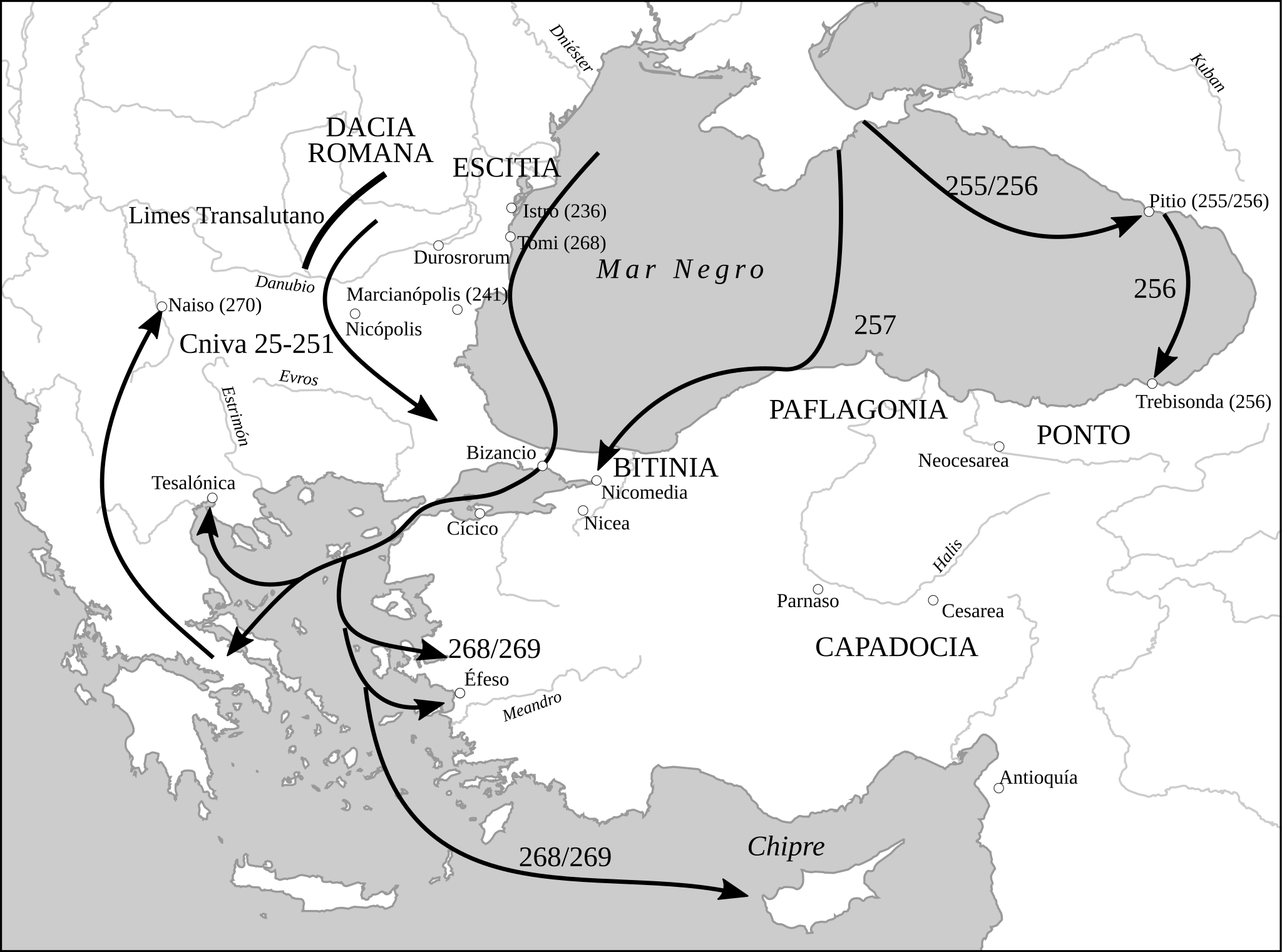 AD 3세기는 안토니우스 전염병으로 시작하여 지역 군인의 무질서와 자발적인 시민 관용의 감소 사례 등 부분적으로 전염병으로 인해 아시아 속주에서 심각한 감소를 기록했다. 3세기 위기의 일부인 250년대와 260년대의 고트 족의 침략은 안전에 대한 불안감을 느끼게 했다. 더욱이 정치적, 전략적 강조가 아시아 속주에서 멀어지면서 이전의 명성을 많이 잃었다.