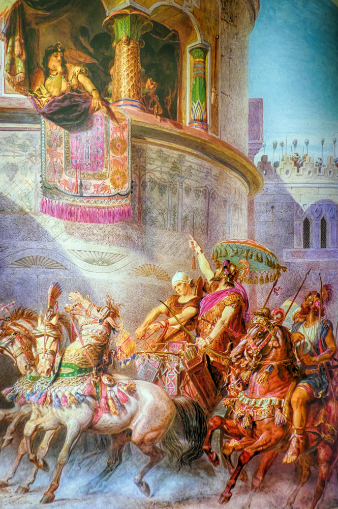예후는 이스르엘에 있는 궁전에 들어가기 시작했다. 이세벨은 궁전 창문에서 멸시하며 그를 시므리 왕에 빗대어 조롱했다. 예후는 나중에 이세벨의 환관에게 그녀를 궁전 창밖으로 내던지라고 명령했고 그들은 그의 명령에 순종하여 이세벨은 즉시 죽임을 당했다. 예후는 그녀의 몸을 짓밟은 후 왕실의 후손으로 적절한 매장을 마련하기로 결정했지만 개들이 먹어치워 그녀의 두개골, 손, 발만 남았다.