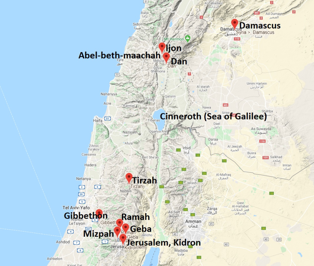 아사의 36년에 북이스라엘의 바아사 왕이 남유다 왕국을 공격했다(대하 16:1). 또는 아사의 통치 26년과 바아사의 생애 마지막 해로 해석될 수 있다(왕상 16:8). 바아사는 예루살렘에서 10마일도 안 되는 국경에 라마 요새를 지었다. 그 결과 수도가 압력을 받고 군사 상황이 위태로워졌다. 아사는 성전에서 금과 은을 가져와 아람 다마스쿠스의 왕 벤하닷 1세에게 바아사와의 조약을 취소하는 대가로 보냈다. 벤하닷은 이욘, 단 및 납달리의 많은 중요한 도시를 공격했고 바아사는 라마에서 철수해야 했다. 아사는 미완성된 요새를 헐고 그 자재를 사용하여 국경 쪽에 있는 게바와 미스바를 요새화 했다.