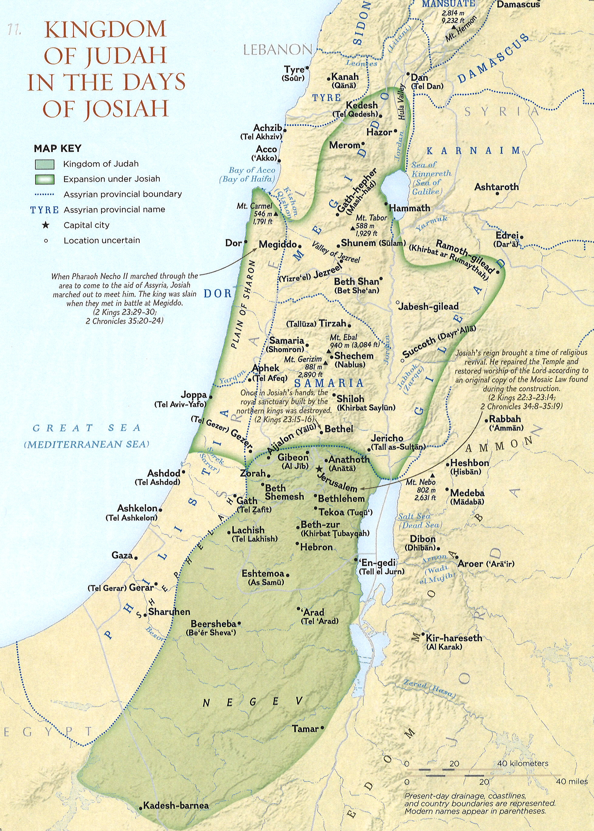BC 641/640년 경에 요시야가 유다의 왕이 되었을 때 국제 상황은 유동적이었다. 아시리아 제국은 붕괴되기 시작했고 신 바빌로니아 제국은 아직 일어나지 않았으며 서쪽에 있는 이집트는 아시리아 지배에서 회복하고 있었다. 이러한 권력 공백 속에서 예루살렘은 외세의 개입 없이 당분간 스스로를 다스릴 수 있었다.