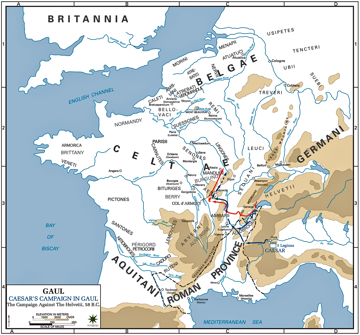 BC 58년 3월 28일 헬베티는 모든 부족민과 가축을 데리고 이주를 시작했다. 그들은 이주를 되돌릴 수 없도록 마을과 창고를 불태웠다. 카이사르가 총독이었던 갈리아 트란살피나에 도착하자 그들은 로마 영토를 지나가기 위해 허가를 요청했다. 카이사르는 요청을 받았지만 결국 거부했다. 헬베티는 대신 로마 영토를 완전히 피해 북쪽으로 돌아갔다. 로마에 대한 위협은 끝났지만 카이사르는 군대를 이끌고 국경을 넘어 헬베티를 공격했다. 그래서 역사가 케이트 길리버가 "자신의 경력을 올리려는 장군이 이끄는 공격적인 확장 전쟁"이라고 묘사한 전쟁이 시작되었다.