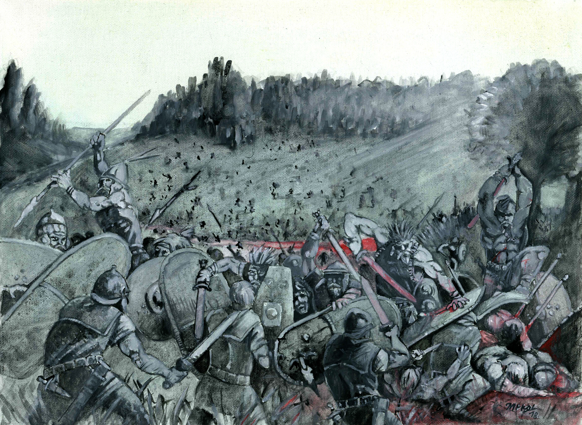 유능한 암비오릭스 아래의 에부로네스족는 퀸투스 티투리우스 사비누스와 루키우스 아우룬쿨레이우스 코타 아래에서 한 개 군단과 5개의 코호트를 겨울철에 강요당했다. 암비오릭스는 로마 진영을 공격하고 사비누스에게 (거짓으로) 모든 갈리아가 반란을 일으키고 있고 게르만 부족들도 침략하고 있다고 말했다. 그는 로마군이 캠프를 버리고 로마로 돌아가면 안전한 귀로를 제공하겠다고 제안했다. 길리버가 믿을 수 없을 정도로 어리석은 행동으로 묘사한 것과 같이 사비누스는 암비오릭스를 믿었다. 사비누스가 캠프를 떠나자마자 그의 군대는 가파른 계곡에서 기습 공격을 받았다. 사비누스는 지형에 적합한 대형을 선택하지 않았고 미숙한 부대는 당황했다. 갈리아인은 결정적으로 승리했고 사비누스와 코타는 둘 다 죽었으며 소수의 로마 병사만이 살아남았다.