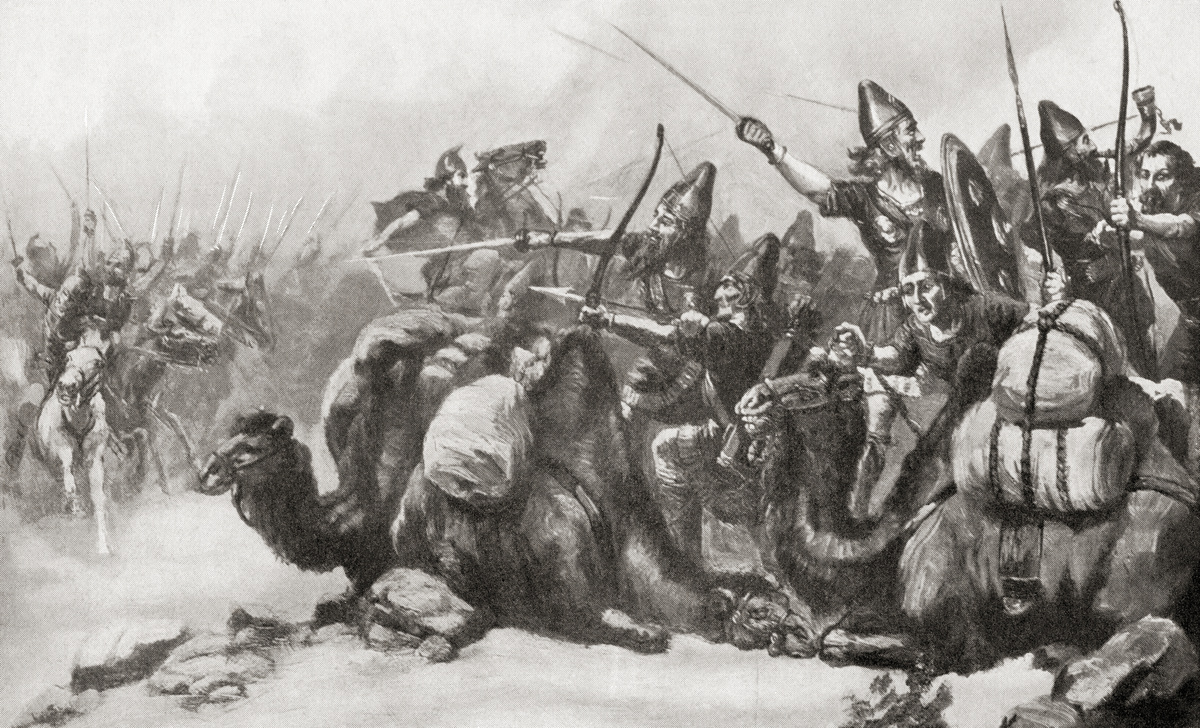 2. 처음의 보병과 기병의 공격은 진행되었지만, 대형 안에 있는 타워와 페르시아 궁병들의 끊임없이 쏟아지는 화살로 인해 수렁에 빠졌다.
