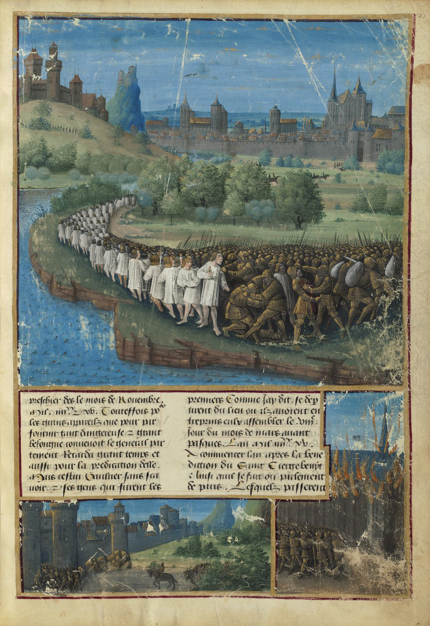 피에르는 1096년 4월 12일 쾰른에 군대를 모아 그곳에서 멈추고 독일인에게 설교하고 더 많은 십자군을 모을 계획을 세웠다. 그러나 프랑스군은 피에르와 독일군을 기다릴 의지가 없었고, 발터 생자부아의 지휘 아래 수천 명의 프랑스 십자군이 피에르보다 앞서 떠났으며 5월 8일 헝가리에 도착하여 사고 없이 헝가리를 지나 베오그라드의 비잔틴 영토 경계에 있는 사바 강에 도착했다. 베오그라드 사령관은 그들을 어떻게 해야 할지 명령할 새도 없이 기습당했고, 입국을 거부해 십자군은 먹을 것을 얻기 위해 농촌을 약탈할 수밖에 없었다. 이로 인해 베오그라드 수비대와 교전이 벌어졌고, 설상가상으로 발터의 부하 16명이 강을 건너 헝가리의 제먼에 있는 시장을 강탈하려다 성벽에 걸려있던 갑옷과 의복을 빼앗겼다. 결국 십자군은 니슈까지 갈 수 있게 되었으며 그곳에서 식량을 공급받고 콘스탄티노플의 소식을 듣게 되었다.