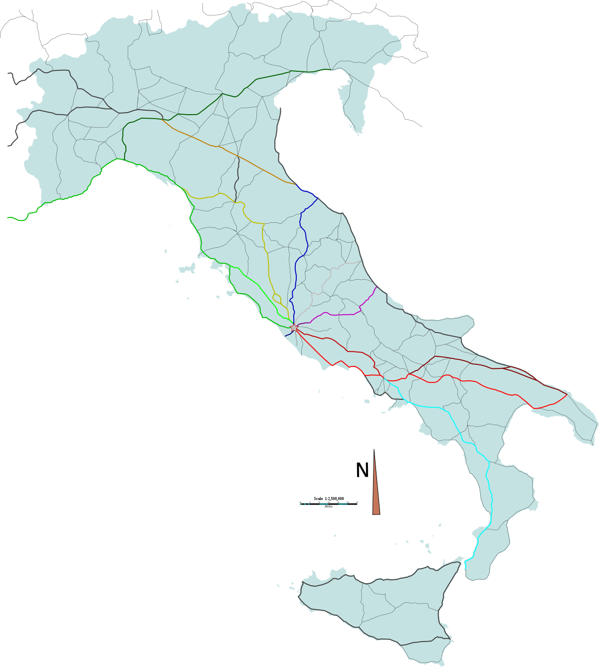 1. 공공, 집정관, 근위대, 군용 도로(Viae publicae, consulares, praetoriae or militares)