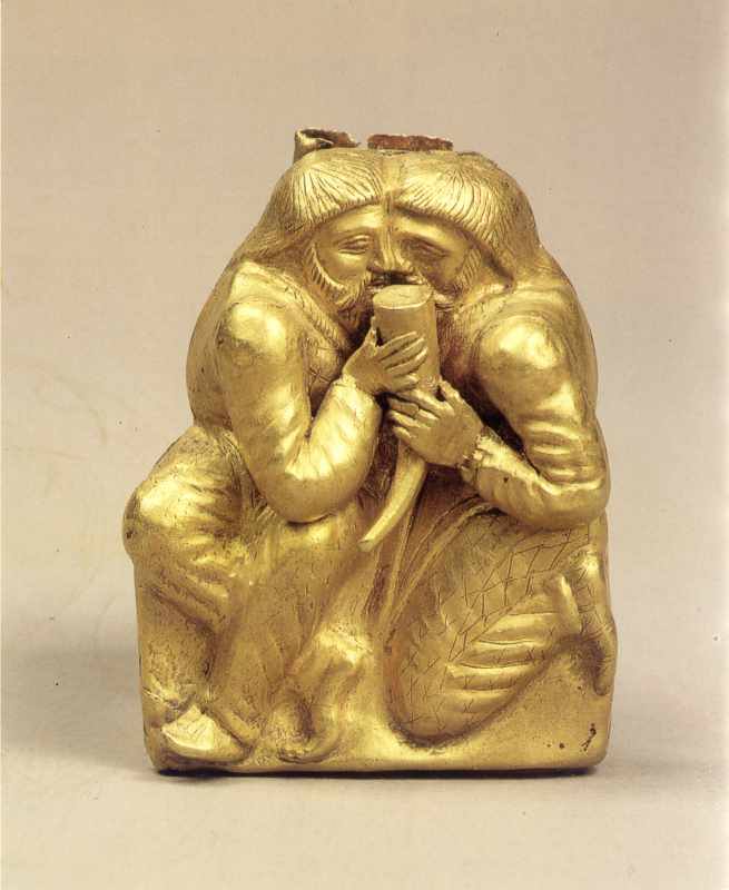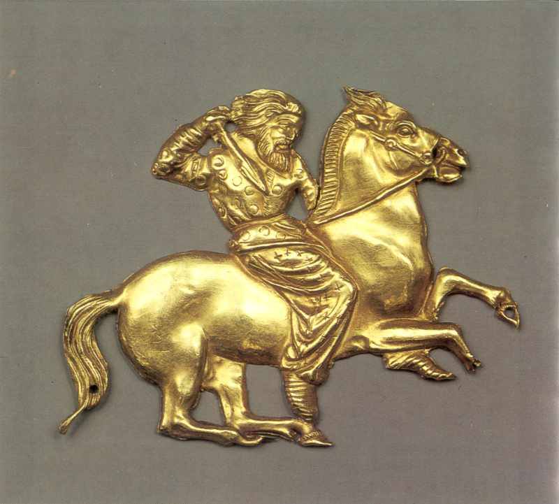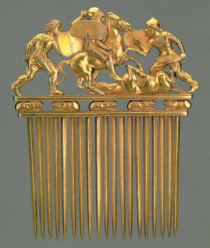 러시아 예르미타시 박물관에 보관된 BC 4세기 스키타이족의 전투를 묘사한 솔로카 스키타이 고분(우크라이나 남부)의 황금 머리빗