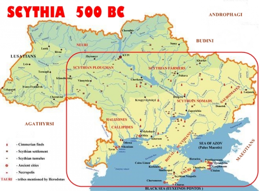 스키타이족은 조상들의 고향이 오늘날의 우크라이나 영토라고 믿었고, BC 7세기 이곳에서 킴메르족을 만났을 때 1,000년 전에 드니프로 강을 따라 살았다고 주장했다.