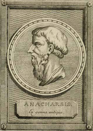 고대 석판 미니어처에서 복제한 스키타이 철학자 아나카르시스의 18세기 판화