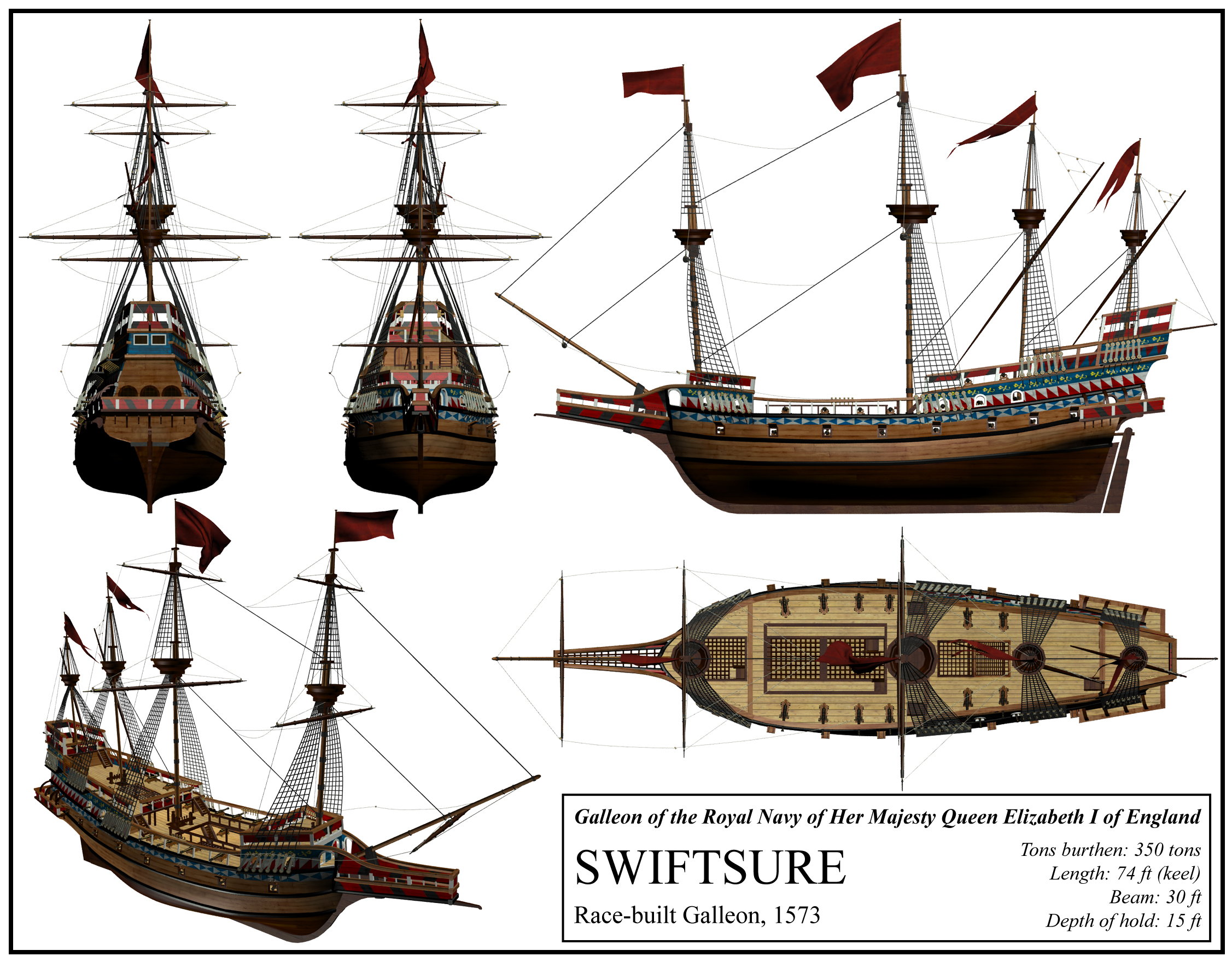 · 1577년에 건조된 갤리언 '리벤지'는 1588년 스페인 함대와의 해전에서 프란시스 드레이크 경의 기함이었으며 1591년 아조레스 제도의 플로레스에서 스페인 함대가 나포하여 스페인으로 다시 항해하는 동안 침몰했다.