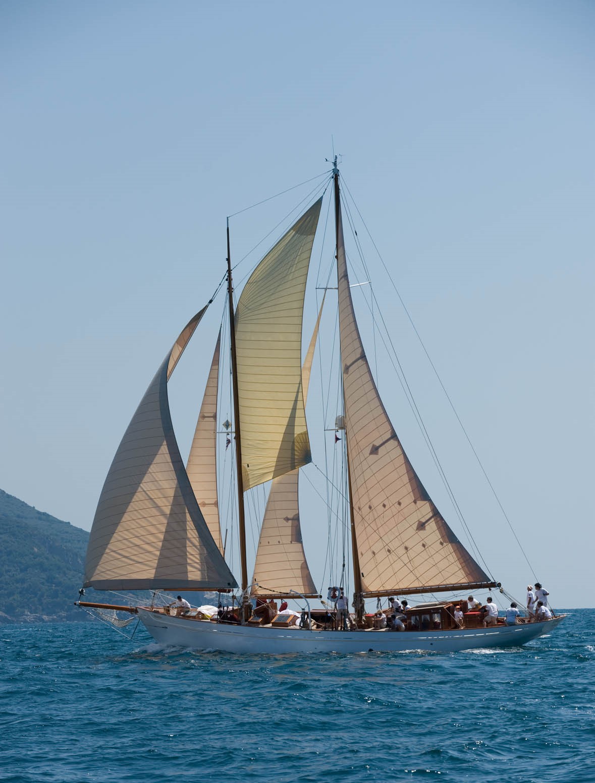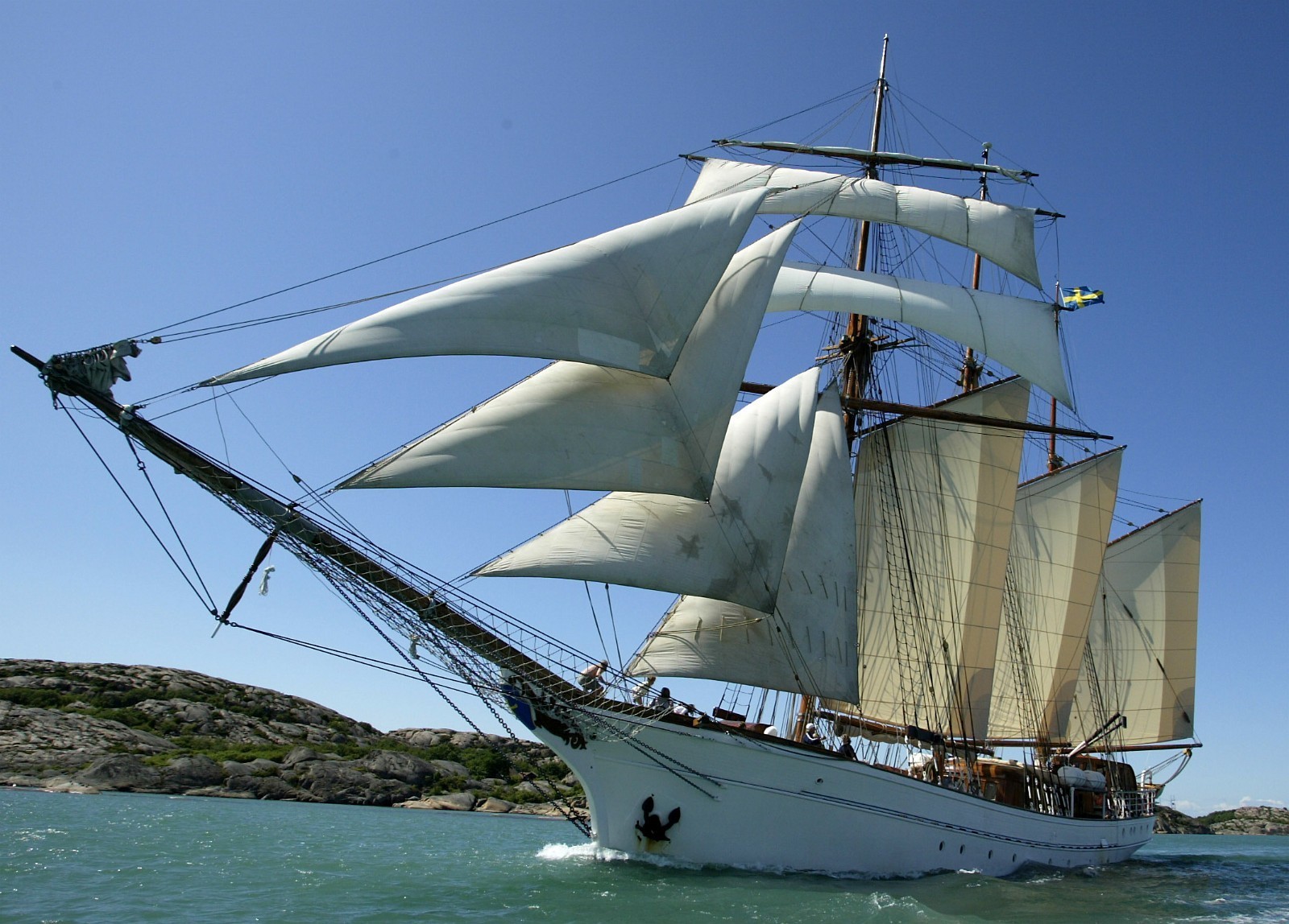 · 네 개 돛대 스쿠너 : 돛을 손으로 들어 올렸던 시기에 이 형태는 많은 작은 돛을 돛 영역을 펼쳤다. 이들은 북아메리카의 대서양 연안의 연안 무역, 서인도 제도, 남아메리카 및 일부 대서양 횡단 항해에 사용되었다.