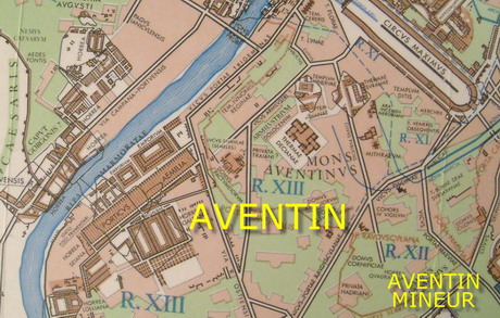 로마의 일곱 언덕 중 하나인 아벤티노 언덕(몬스 아벤티누스), Regio XIII은 높이가 아주 낮았다. 언덕은 실제로 작은 협곡이 공유하는 두 개의 봉우리로 구성되어 있으며 첫 번째 봉우리는 테베레 강에 가깝고 두 번째 봉우리인 소 아벤티노(그리고 피스키나 푸블리카라고 불리는 로마의 Regio XII에 속하는 일부)는 더 남쪽에 있다. 공화국 동안에는 항상 인기 있는 지역이었으며 제국 시대에 더 많은 주거 지역이 되었다. 세르비우스 툴리우스 왕은 라틴인의 연방 성소가 된 다이아나 사원을 지었다. 또 다른 오래된 종교 건물인 미네르바 사원도 있었다. 가장 인상적인 데키우스 목욕탕 외에도 트라야누스 황제의 친구 중 한 명이 사설 목욕탕인 수라 목욕탕을 지었다.