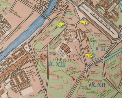 아벤티노에서 가장 큰 건축물인 데키우스 목욕탕은 242년에 지어졌다. 데키우스의 목욕탕.