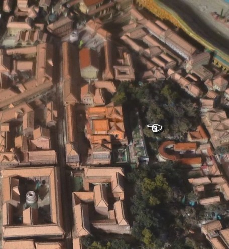 아벤티노의 비탈을 오르면서 프로부스 다리 높이에서 우리는 주목할만한 사원과 주랑 현관을 발견할 수 있다. 유노 퀸 신전은 사진의 거의 중앙에 있는 거대한 사원이다. 유노 퀸 신전 옆에는 아시니우스 폴리오의 구상 덕분에 로마 최초의 공공도서관이 된 리베르타스 신전이 있었다. 사진 왼쪽의 주랑 현관으로 둘러싸인 거대한 광장은 매년 10월 19일(무기 정화 축제일)에 열리는 마르스 신의 축제에 헌정된 아르밀루스트리움일 수 있다. 광장의 중앙에는 마르스에 헌정된 작은 제단이 서있었다. 트라야누스는 사진의 하단에 아르밀루스트리움 근처에 사저를 두고 있었을 것이다.