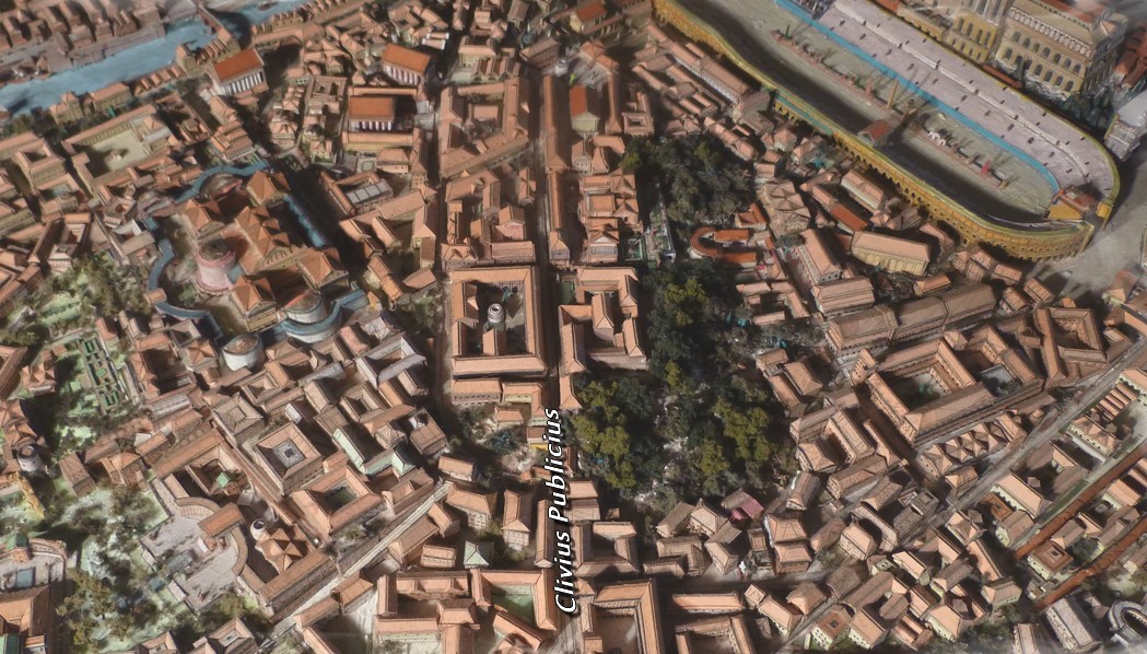 리키니우스 수라의 사설 목욕탕은 키르쿠스 막시무스로 이어지는 비탈의 꼭대기에 있는 클리부스 푸블리키우스를 따라 지어졌다. 키르쿠스와 팔라티노의 전망은 훌륭했다.
