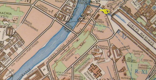 비쿠스 포르타이 트리게미나이는 보아리움 포룸과 엠포리움을 연결하는 또 다른 중요한 길이었다. 길을 열어준 세르비우스 성벽의 오래된 문인 포르타 트리게미나는 역사상 가장 많이 언급되었다. 통행을 쉽게 하기 위해 세 개의 통로가 있었던 것 같다. 사진 중앙에는 케레스 신전(템플룸 케레리스)이 있다. 조금 더 내려가면 오른쪽에서 뒷면에서 본 달의 신전이 보인다.