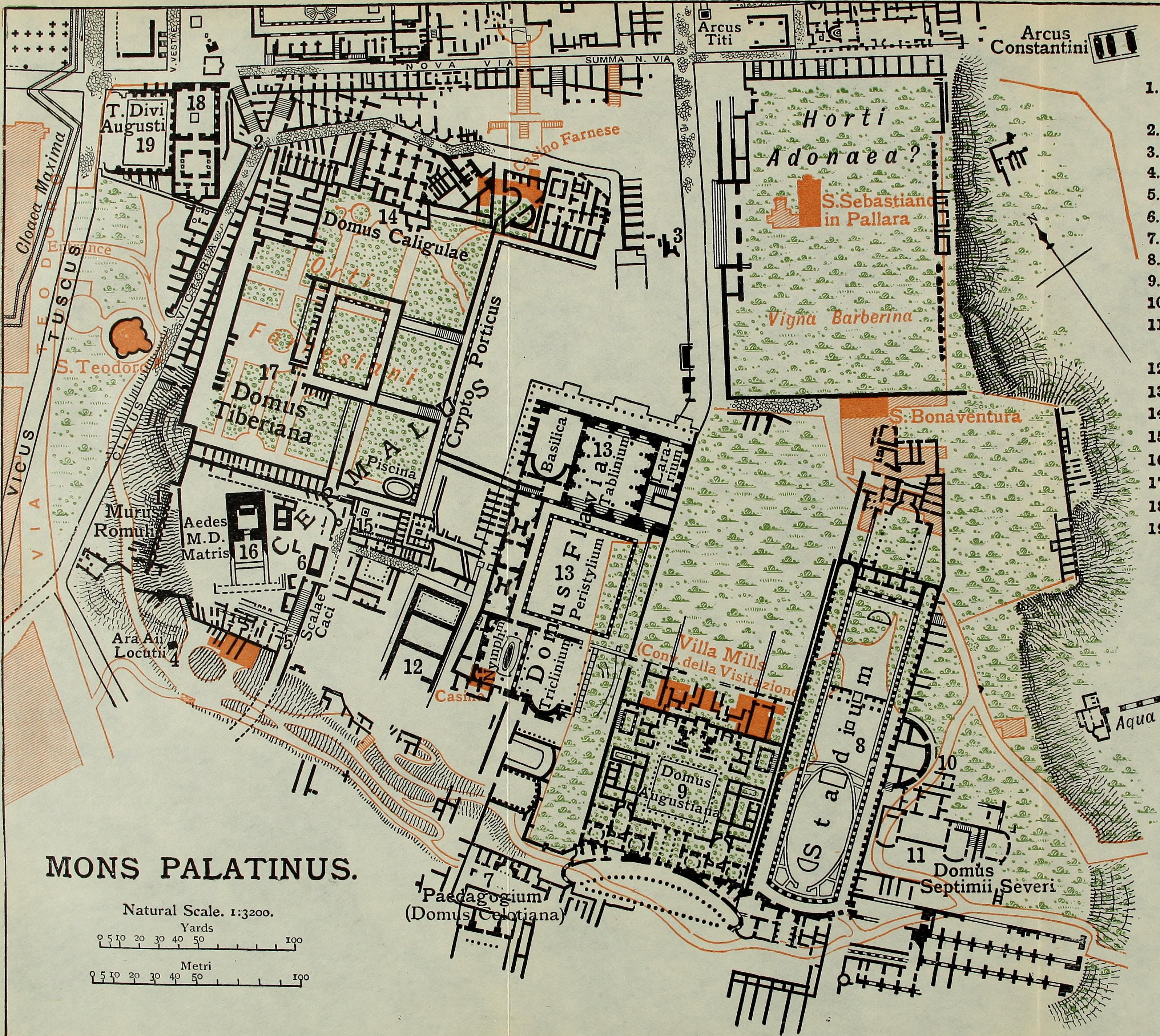팔라티노의 파이다고기움. 제국 시대에 젊은 노예들을 훈련시켜 귀족 가문에서 봉사하게 했던 로마에서 관리(파이다고구스)라고 불렸던 특수학교였다. 당연히 이들은 팔라티노와 황제를 섬겼기 때문에 가장 중요했다.