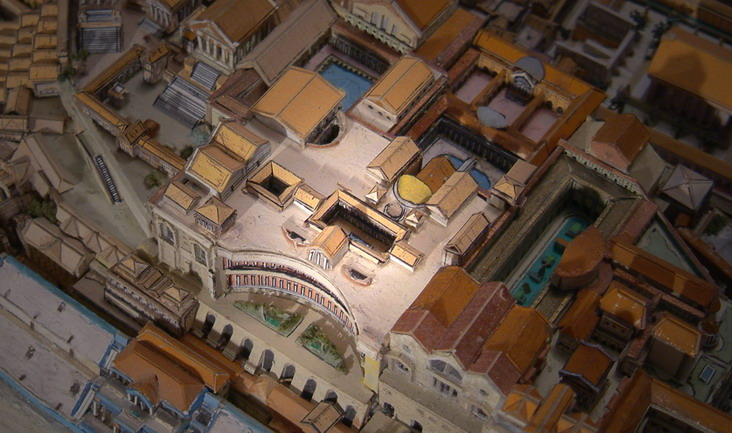 궁전을 더 자세히 살펴보면 칼리굴라 궁전과 사진 중앙에 티베리우스 궁전이 있다.