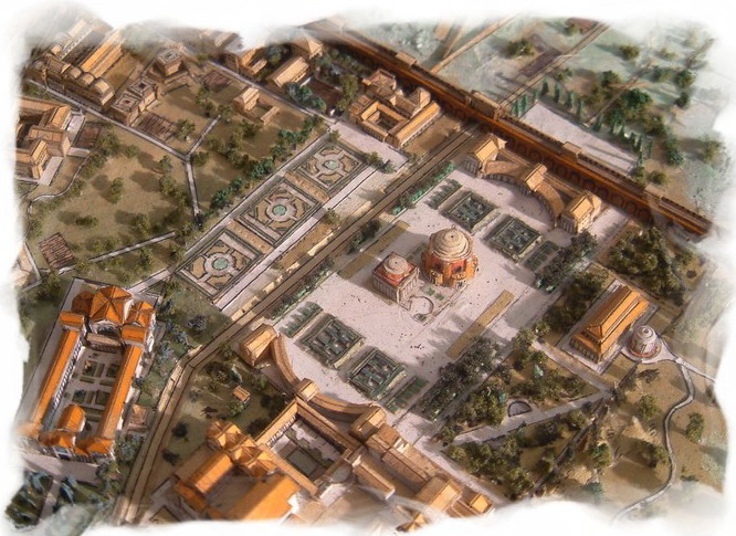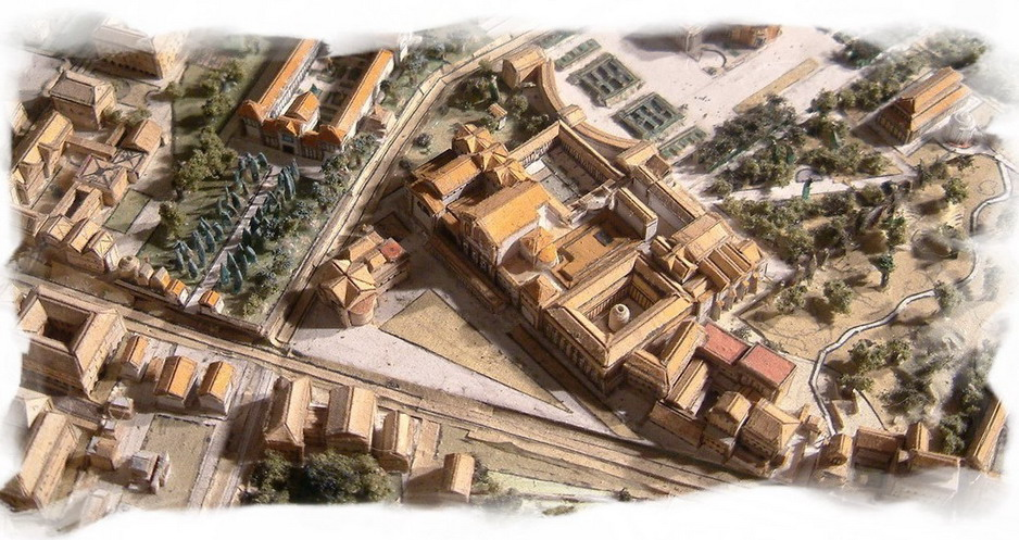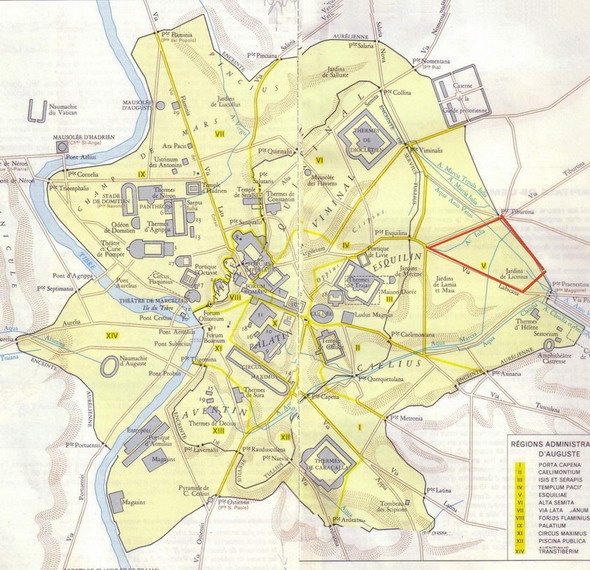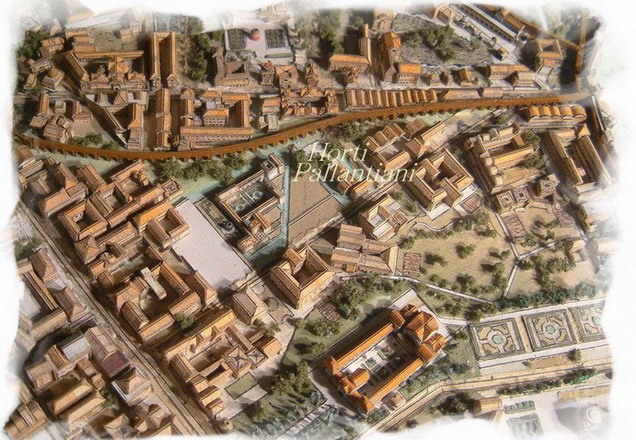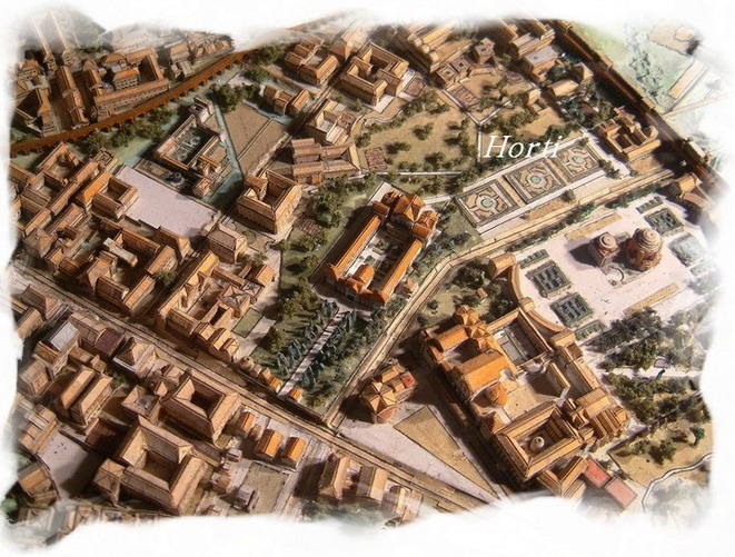 사진 중앙에는 웅장한 정원(호르티)이 있는 에파프로디투스의 저택이 있다. 에파프로디투스는 네로 황제의 해방노예이자 비서였으며 그가 자살하는 것을 도왔다.