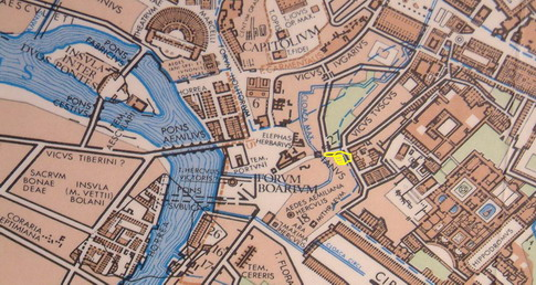 남쪽에서 본 포룸 보아리움. 사진 거의 중앙에 있는 야누스의 아치. 사진 왼쪽에 아이밀리우스 다리와 수블리키우스 다리가 있다. 포룸 보아리움은 상거래를 위한 전략적 장소였다. 티베르 강을 거슬러 올라간 배들은 아이밀리우스 다리 옆에 있는 왼쪽 강둑에 정박했다. 사진 상단에 카피톨리노 언덕이 있고, 오른쪽에 팔라티노가 보인다. 이것이 벨라브로 계곡을 형성했다. 또 다른 포룸인 포룸 홀리토리움(농산물 시장)은 포룸 보아리움과 마르켈루스 극장 사이의 접근 통로였다.