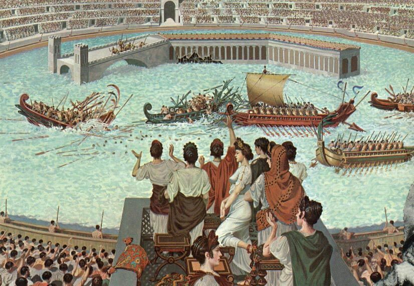BC 42년, 아우구스투스가 1800 피트의 길이와 1200 피트의 넓이(552 x 355 미터)를 가진 거대한 분지를 건설한 것은 마르스 울토르 신전의 개관을 기념하기 위한 것이었으며 살라미스 해전을 재현한 장소이다. BC 2년에 지어진 지하 수로인 알시에티나는 사진 하단의 건물 아래를 흐르는 물을 공급했다. 일부 소식통에 따르면, 이 나우마키아는 2세기가 시작되기 전에 사라졌을지도 모른다.