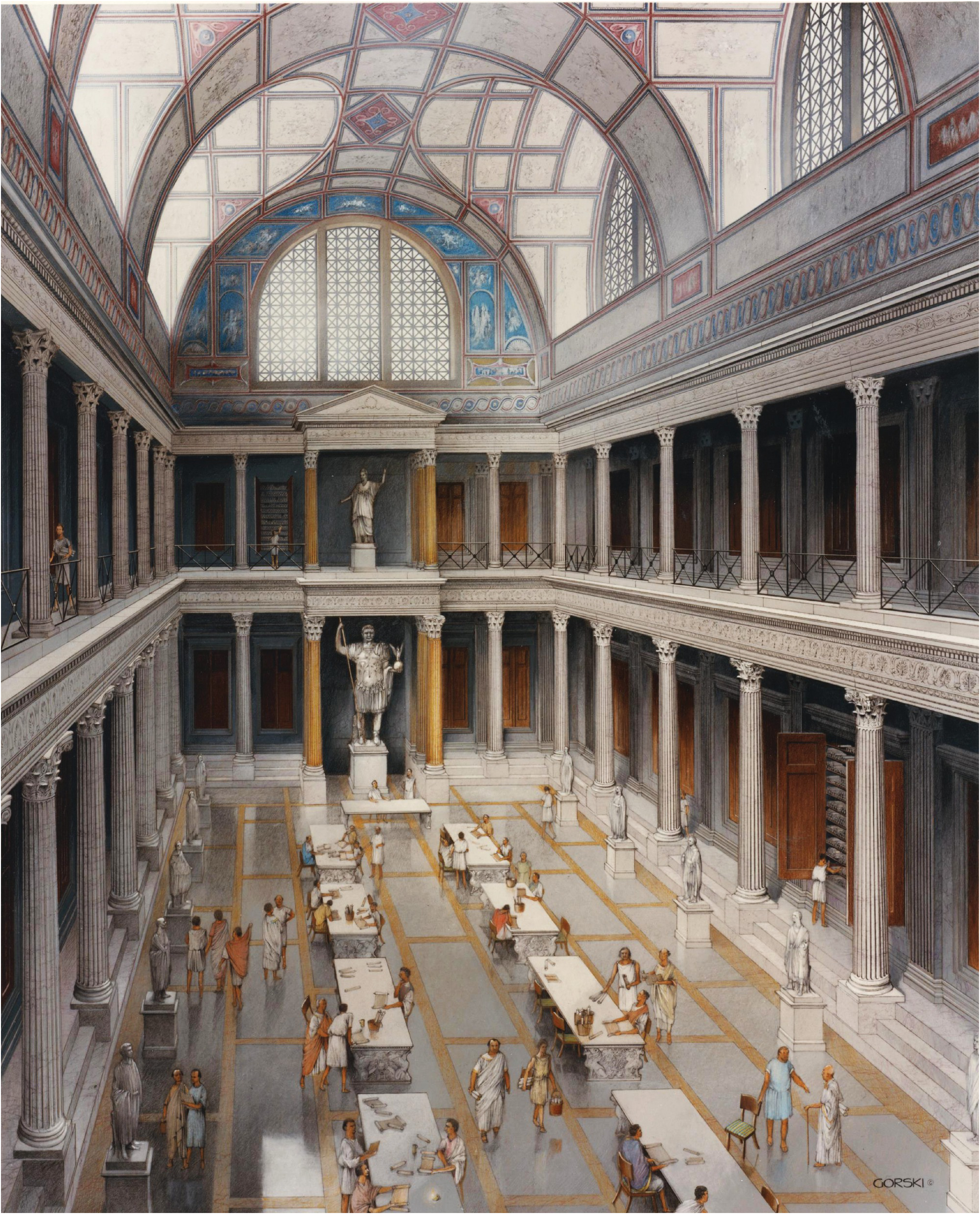 서로 반대편에 있던 두 도서관은 각각 라틴어 작품과 그리스 작품을 소장하고 있었다.